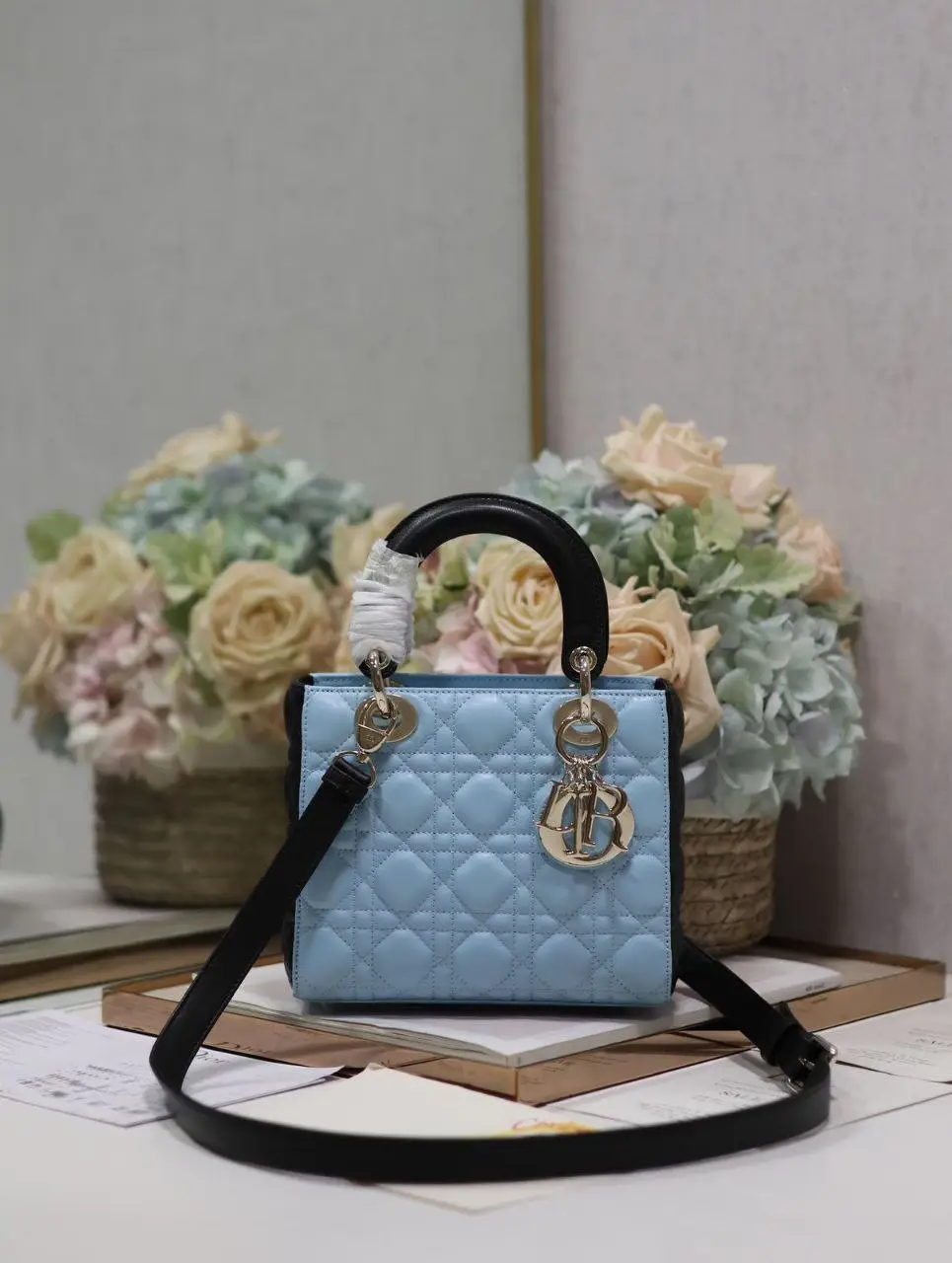 Design Small Lady Bag Two-Tone Sky Blue and Steel Gray Cannage Lambskin – Dubai Fashion LUX