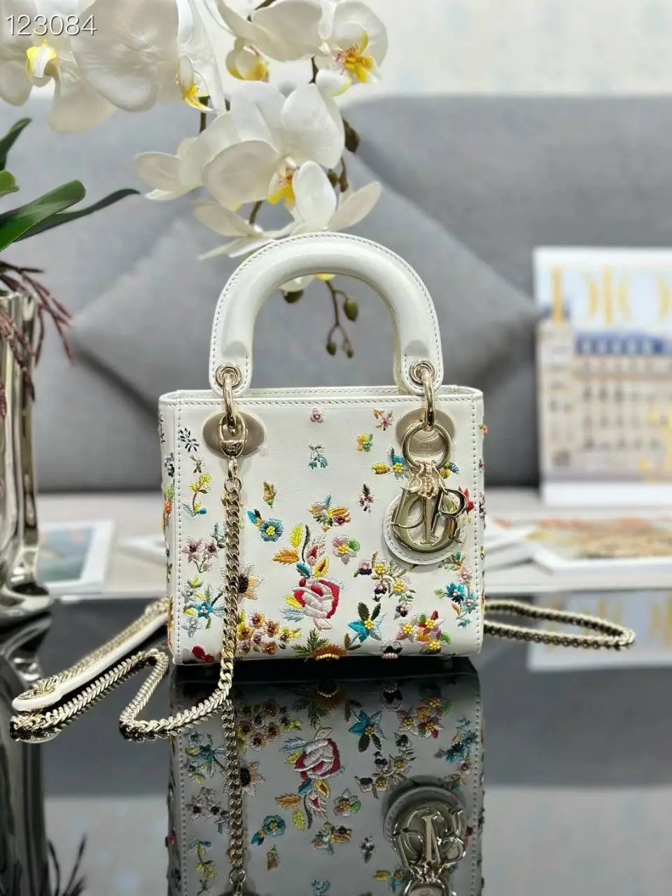 Design Women Mini Lady Bag Latte Calfskin Embroidered with Multicolor Small Flowers – Dubai Fashion LUX