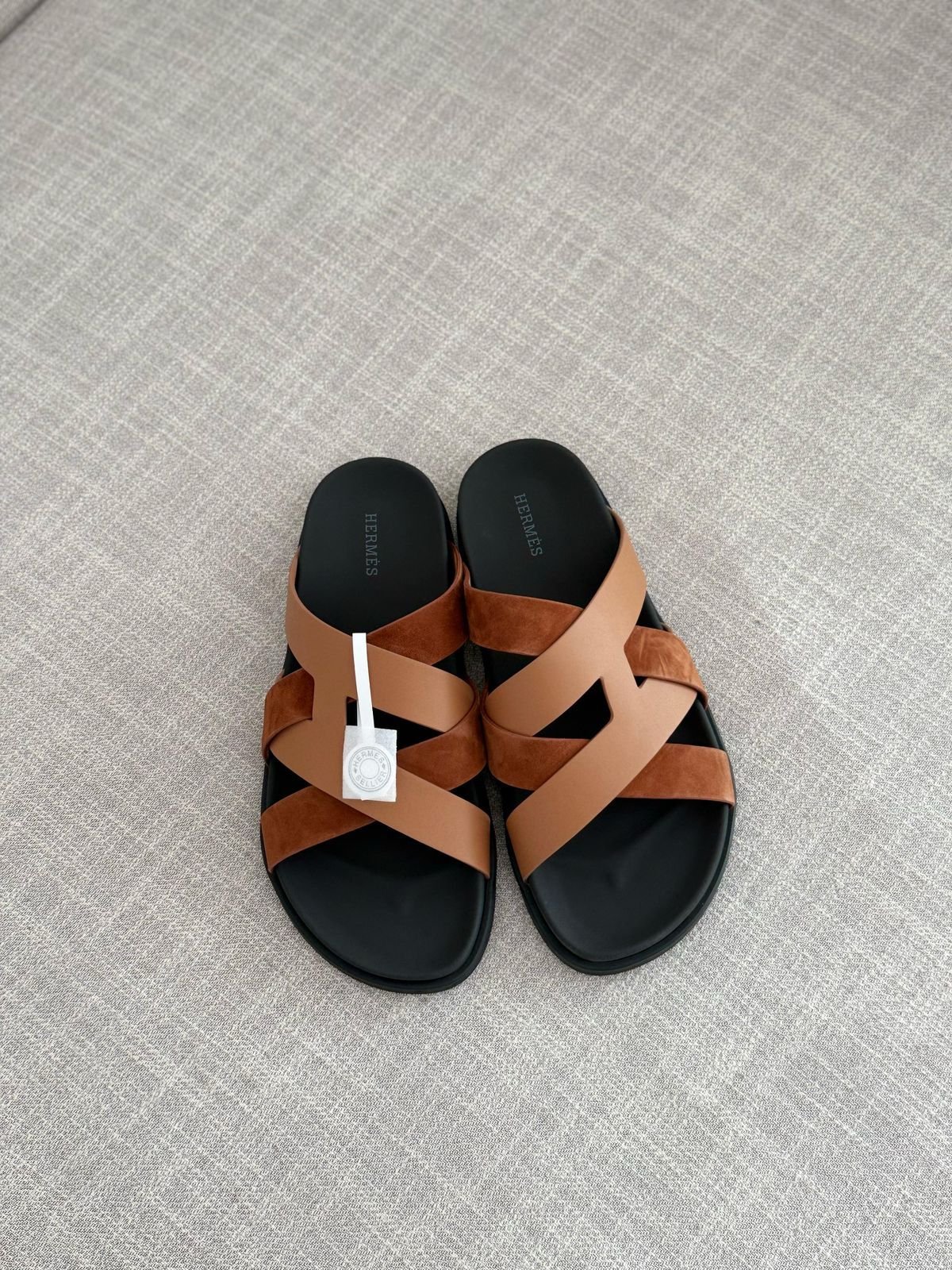 Step into luxury with the HERMES Synthetic Leather Slippers, crafted for those who appreciate elegance and comfort. Made from high-quality synthetic leather, these slippers offer a premium look and feel while being durable and easy to maintain. The cushioned insole ensures all-day comfort, making them perfect for indoor relaxation or quick outdoor errands.