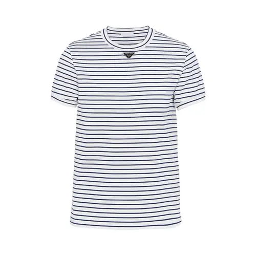 Prada Triangle-logo Stripe-print T-shirt